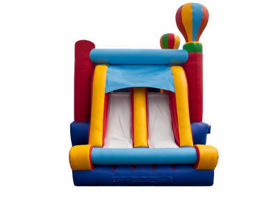 The Dual Hot Air Combo is for the adventurous kinds who enjoy hot air ballooning, bouncing around in this ride will definitely give one an air of excitement and adventure. The Dual Hot Air Combo stays true to the full sized bouncing mattress to ensure superior bounce. The Dual Hot Air Combo also has a basketball hoop and two exit 6' tall slides to add to the fun.