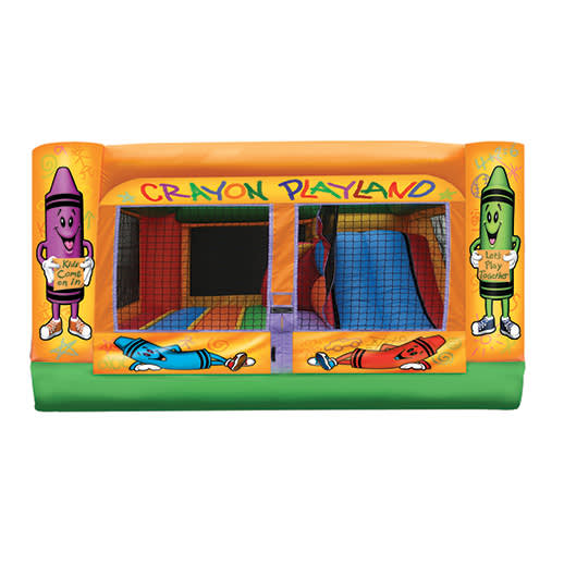 Looking for the perfect indoor size Combo? Well, look no further. This beautiful Crayon themed 3 in 1 Mini Combo has a Bounce, Climb and Slide and is designed to fit in small spaces. With dimensions of 13'L x 11'W x 7'10"H, it will fit inside homes, garages, carports, basements, childcare centers, and any other confined area.