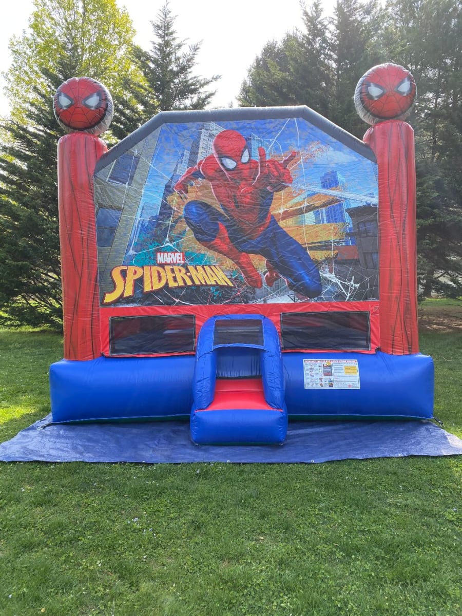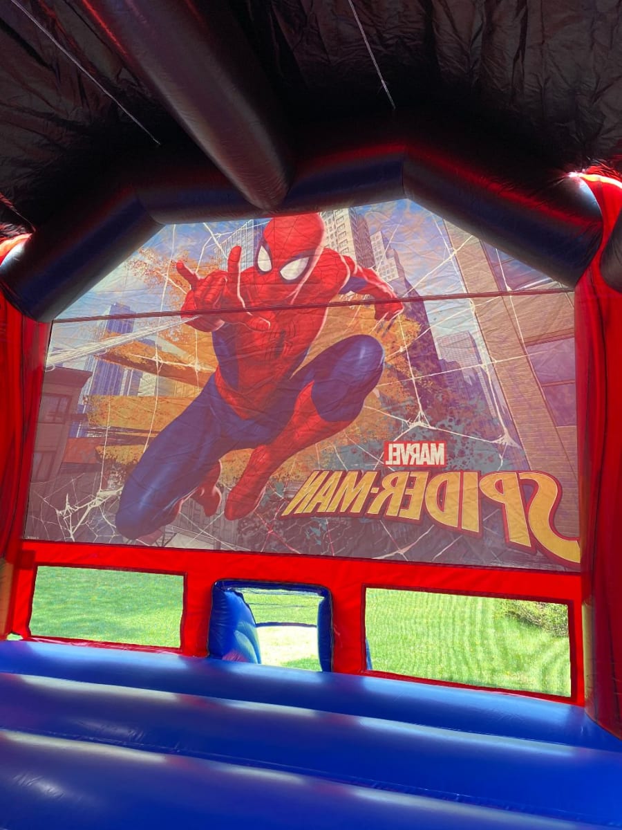 Courtesy of your friendly neighborhood web slinger comes SPIDER MAN 15' x 15' bounce house. It has plenty of space for your friendly neighborhood friends at a time to bounce, hop, skip, and jump to their heart's content. To top it off is a basketball hoop inside!! It is a spectacular & amazing ride that is suitable for all occasions. This wonderful inflatable is also equipped with additional safety features such as a safer entrance/exit ramp and emergency exit.