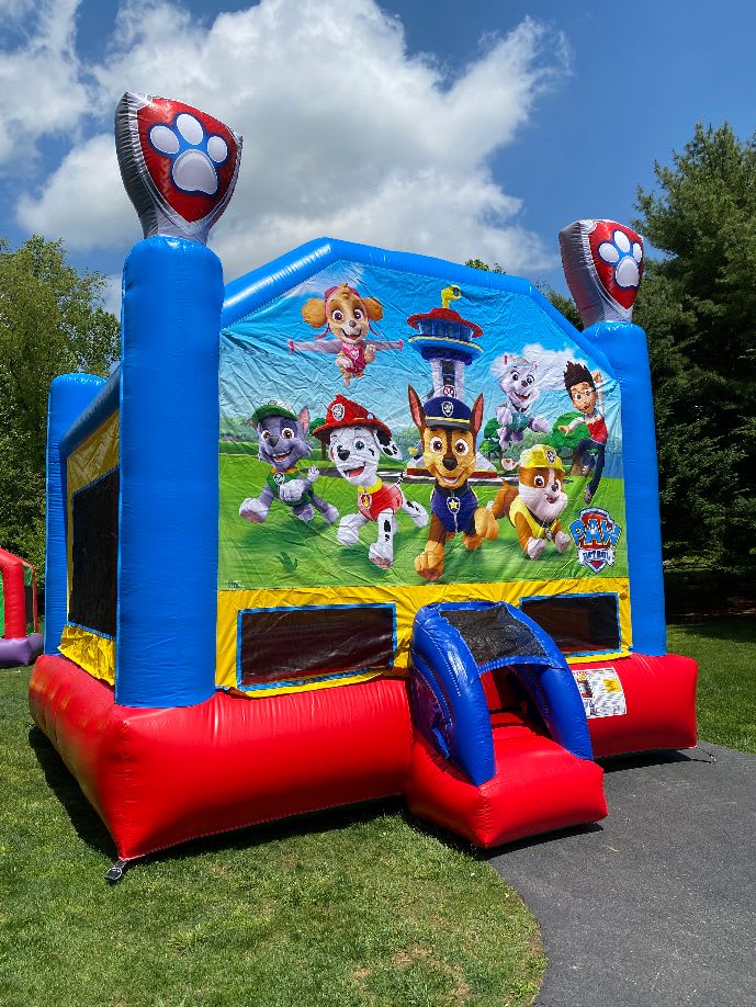 Coming late Spring 2024 is Paw Patrol! Chase is on the case with the rest of the Paw Patrol team; Marshall, Rubble, Rocky, Zuma, and Skye. There is plenty of space for six Adventure Bay legends at a time. The bounce house colored in blue, red, and yellow vinyl with the signature Paw Patrol emblem on top of both front vertical pillars. To top it off is a basketball hoop inside!! It is a spectacular & amazing ride that is suitable for all occasions. This wonderful inflatable is also equipped with additional safety features such as a safer entrance/exit ramp and emergency exit.