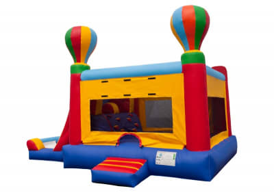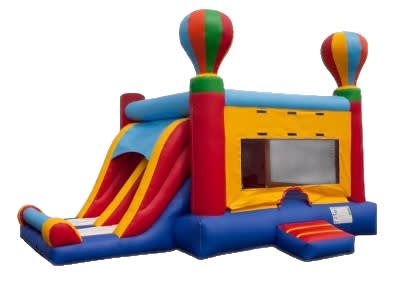 The Dual Hot Air Combo is for the adventurous kinds who enjoy hot air ballooning, bouncing around in this ride will definitely give one an air of excitement and adventure. The Dual Hot Air Combo stays true to the full sized bouncing mattress to ensure superior bounce. The Dual Hot Air Combo also has a basketball hoop and two exit 6' tall slides to add to the fun.