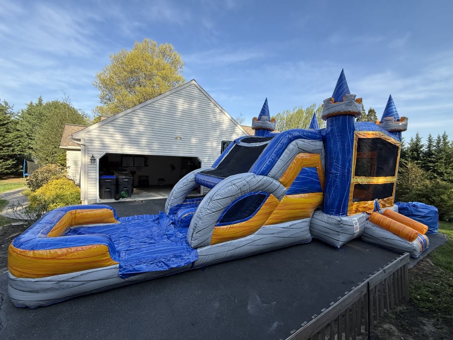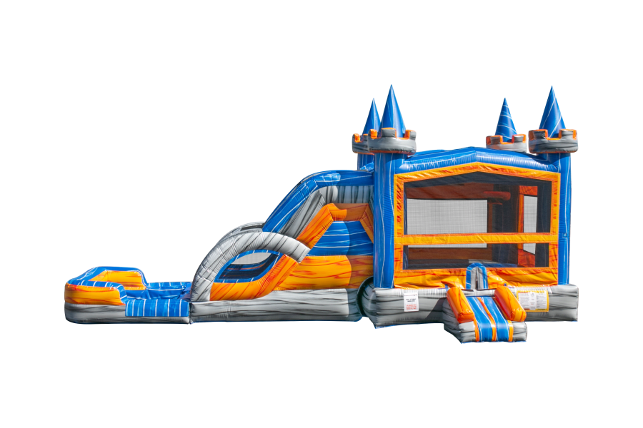 The Orange Crush Castle Combo Wet or Dry is built for those who want to have the WOW factor at any event. Featuring a large bouncer area, basketball hoop and a double lane slide which can be used wet or dry to provide hours of fun.