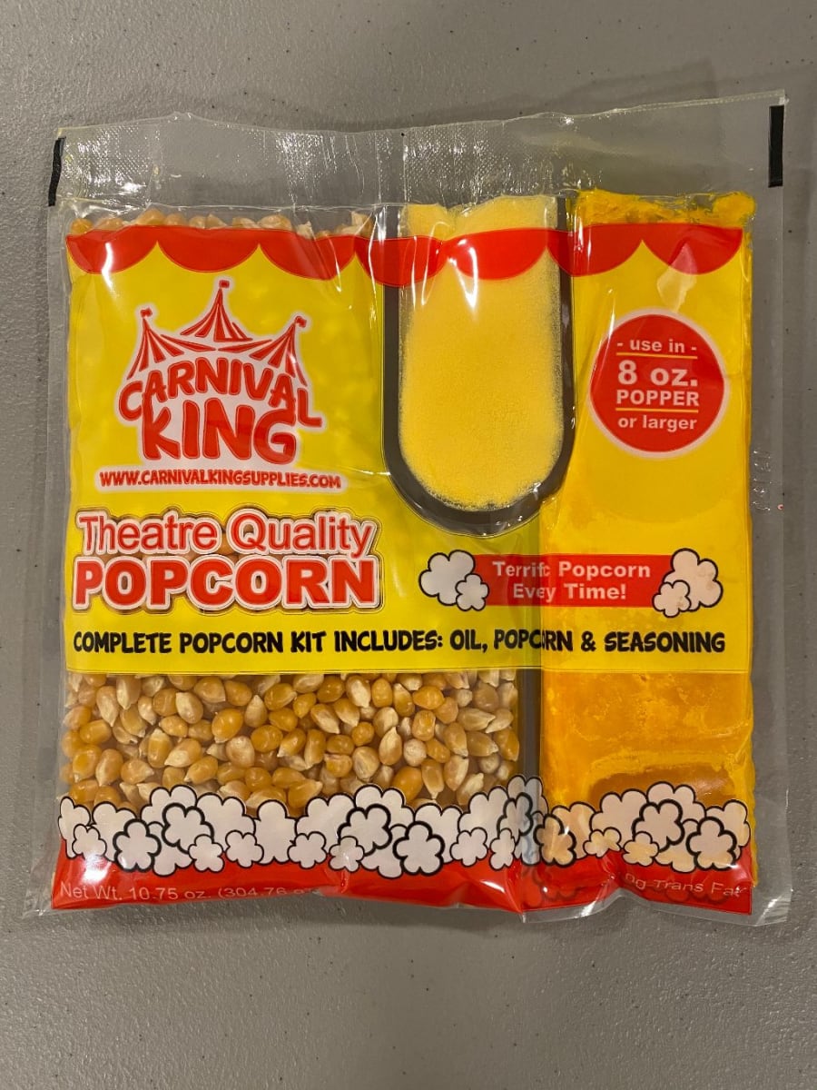 8 oz popcorn kits are available as well. 8-12 servings per kit.