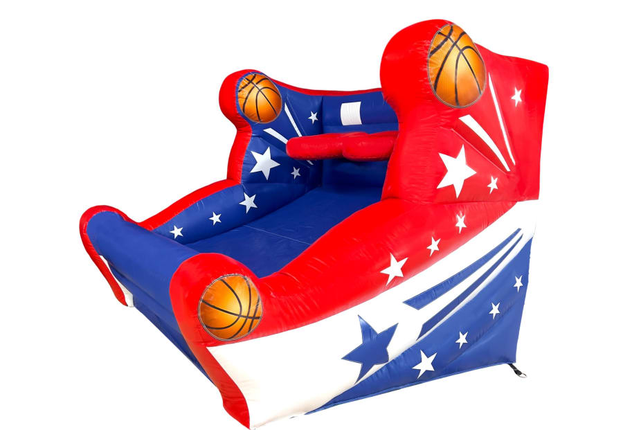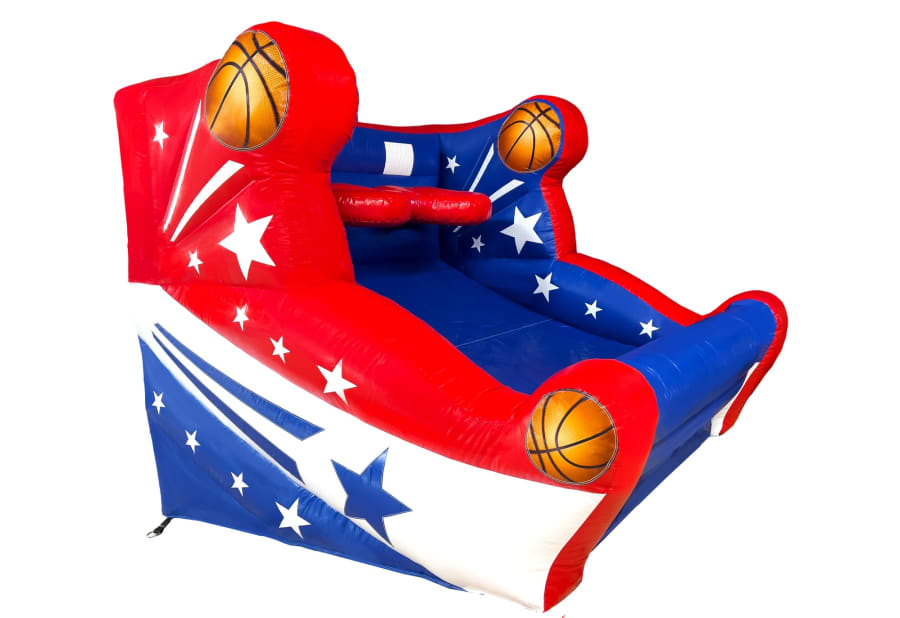 The Free Throw Shootout is a friendly challenge that everyone will love! Whether you are a veteran sharpshooter or a rookie not-so-sharpshooter, this amusement is always a fun activity. Who doesn't enjoy shooting balls through a hoop? The Free Throw Shootout is eight feet tall with two hoops to challenge competitors. Shooters may stand at the free throw line nine feet from the basket or create a tougher challenge from farther spots as they please. Shoot a 3-pointer, half court or full court shot, the challenge is yours to create. Balls are conveniently returned to shooters by the ramp beneath the baskets. Everyone is sure to enjoy a fun shoot-around challenge with the Free Throw Shootout.