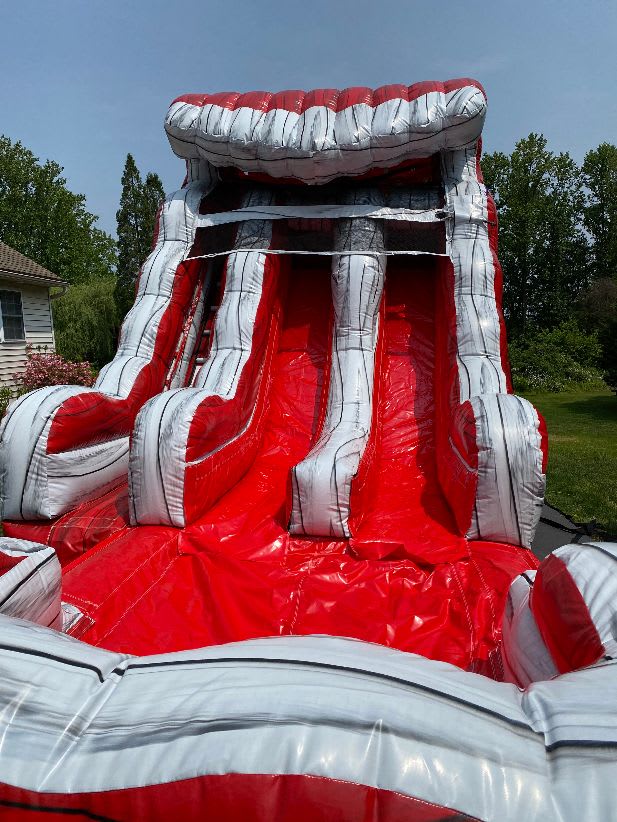 This 15' Liquid Hot Magma Double Lane Water Slide is a perfect option for any event where folks want to cool off and have some adrenaline pumping fun. With an eye-catching design and bright color scheme, Liquid Hot Magma adds a pop of excitement to any event.