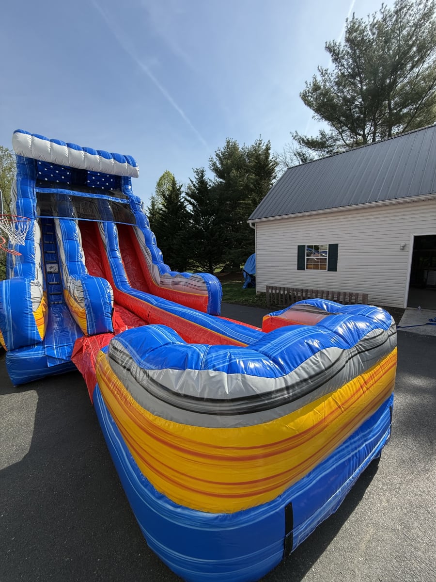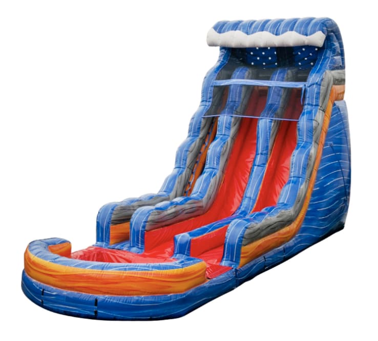 The 18' Fireblast Double Lane Water Slide is a perfect option for any event where folks want to cool off and have some adrenaline pumping fun.